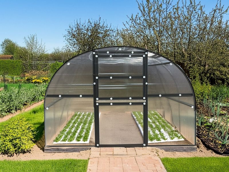 - skleník je vyrobený z ocelových