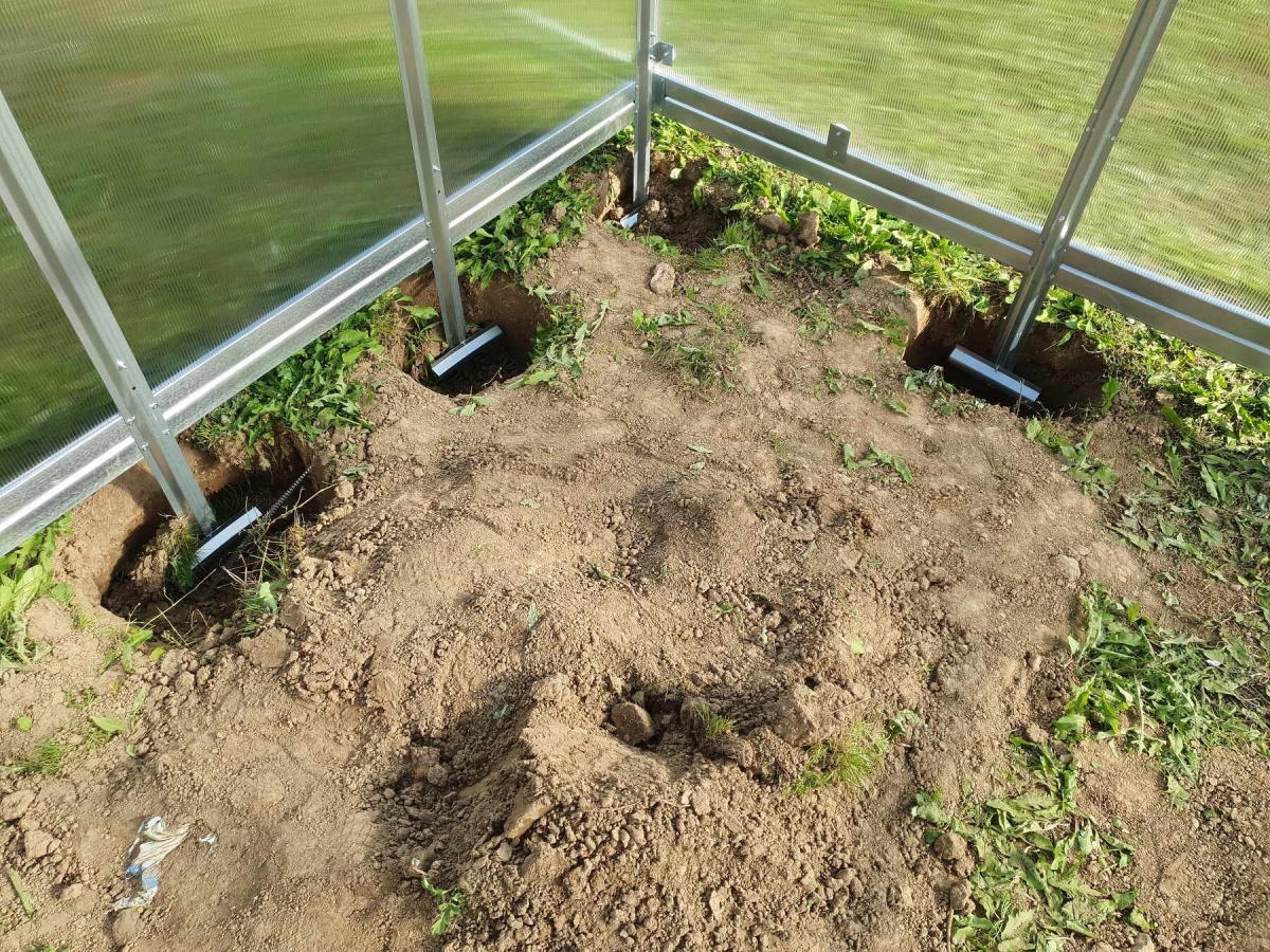 Skleník je vybaven kotvami přímo do země. Montáž skleníku zvládnete svépomocí ve dvou až třech osobách. V půdě se zahradní skleník upevňuje zakopáváním patek konstrukce do země, případně jejich zalitím do betonu (doporučujeme).