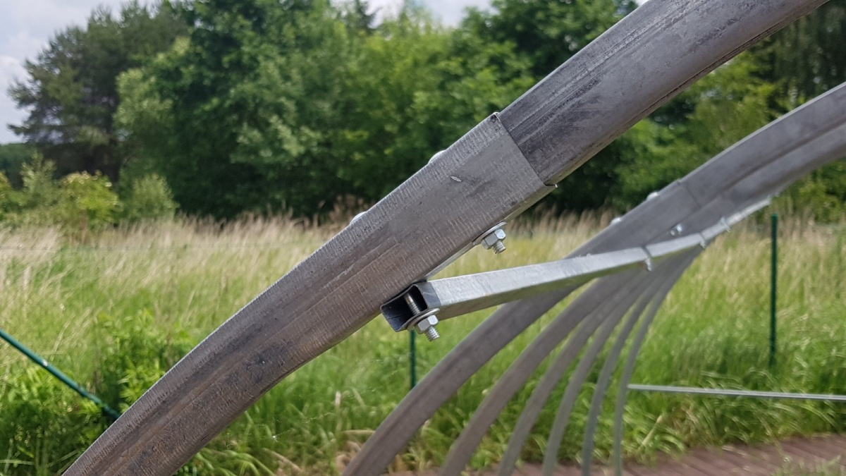 Zahradní skleník má zvýšenou hustotu nosných oblouků na pouhých 67 cm od sebe. Nosné oblouky jsou vyrobeny z galvanicky pozinkované ocelové trubky ve tvaru obdélníku o průřezu 40 × 20 mm a jsou složeny ze tří samostatných kusů (zasunují se do sebe a spoj se jistí šroubem).