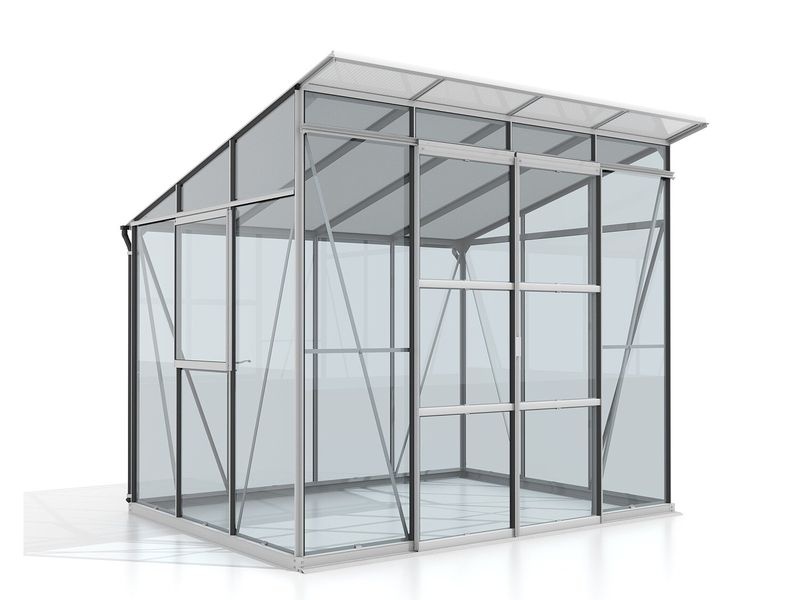Nízký práh skleníku usnadňuje přístup i se zahradním kolečkem, což je velkou výhodou při práci v zahradě. Skleník je dodáván s dvoukřídlými posuvnými dveřmi a bočními i čelními ventilačními okny, která umožňují efektivní větrání.