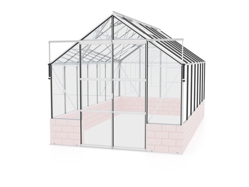 Podezdívka dodává skleníku elegantní vzhled a zlepšuje jeho celkovou pevnost. Výhodou tohoto skleníku je také extrémně nízký práh – do skleníku tak pohodlně vjedete i se zahradním kolečkem nebo vozíkem.