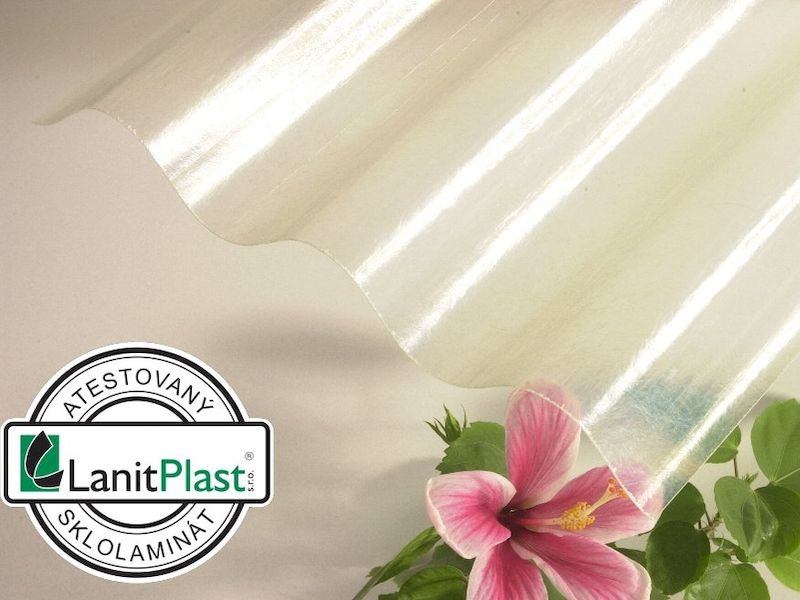 Opálová (mléčně průsvitná) role ze sklolaminátu o síle 0,70 mm v max. návinu 30 m. Typ profilu je vlna 76/18.