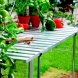 Hliníková AL polička ukotvená dvěma panty na stěně a podepřená dvěma podpěrami od podlahy. Rozměry poličky jsou 120 × 52 × 77 cm (d × š × v). Výrobek dodávame v rozebraném stavu jako stavebnici.