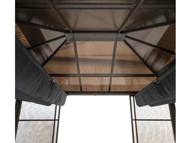 Díky tomu je možné altán nechat na svém místě po celý rok. Dvojitá ocelová střecha také podporuje větrání a díky ní do altánu může proudit čerstvý vzduch.