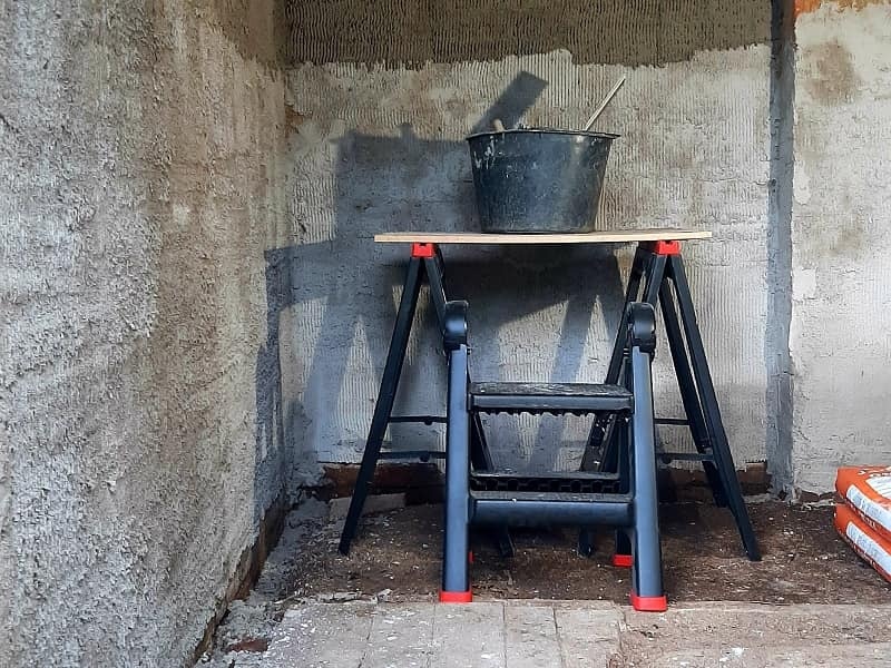 Konstrukce lešenářské kozy je vyrobena z odolného plastu (ABS), který je vyplněn skelnými vlákny. Použitý materiál zajišťuje vyšší odolnost proti mechanickému poškození.