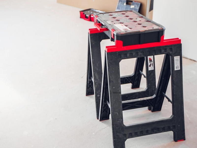 Podstavec o hmotnosti 2,5 kg je lehce přepravitelný. Kozu můžete rychle složit, což zajišťuje snadnou manipulaci v domácích podmínkách i na stavbě.