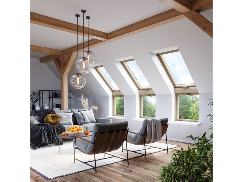 Energeticky úsporné dřevěné střešní okno slouží k osvětlení a provětrání podkroví. Tento model je vhodný pro šikmé střechy se sklonem od 15 do 90 stupňů.