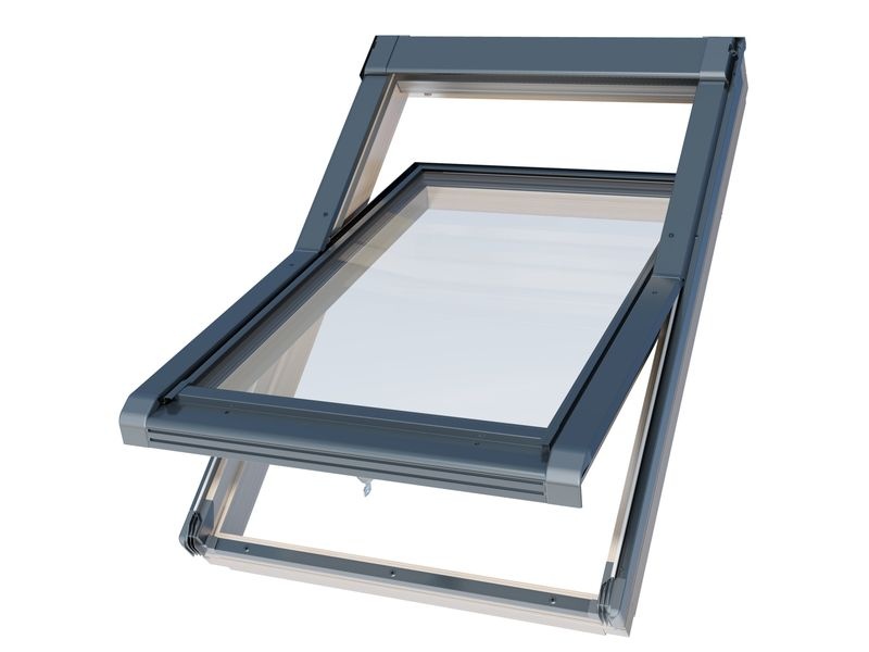 Obě vnějsí skla jsou opatřena nízkoemisními vrstvami, což umožňuje maximální zisk tepla ze slunečního záření při současném omezení tepelné ztráty. Pant uprostřed křídla umožňuje přetočení (rotaci) o 180°. Osa otáčení se nachází v úrovni 1/2 výšky rámu – střešní okno se proto velmi snadno otvírá.