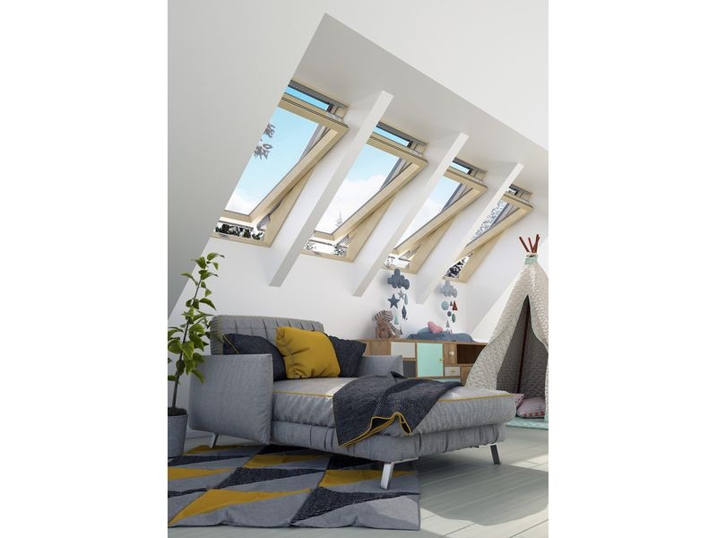 Energeticky úsporné dřevěné střešní okno slouží k osvětlení a provětrání podkroví. Tento model je vhodný pro šikmé střechy se sklonem od 15 do 90 stupňů.