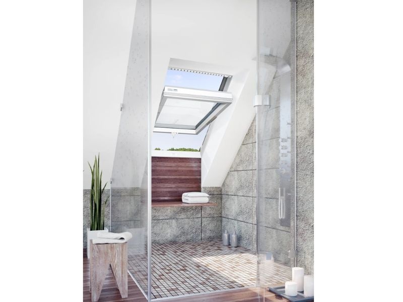 Plastové střešní okno slouží k osvětlení a provětrání podkroví. Tento model je vhodný pro šikmé střechy se sklonem od 15 do 90 stupňů.