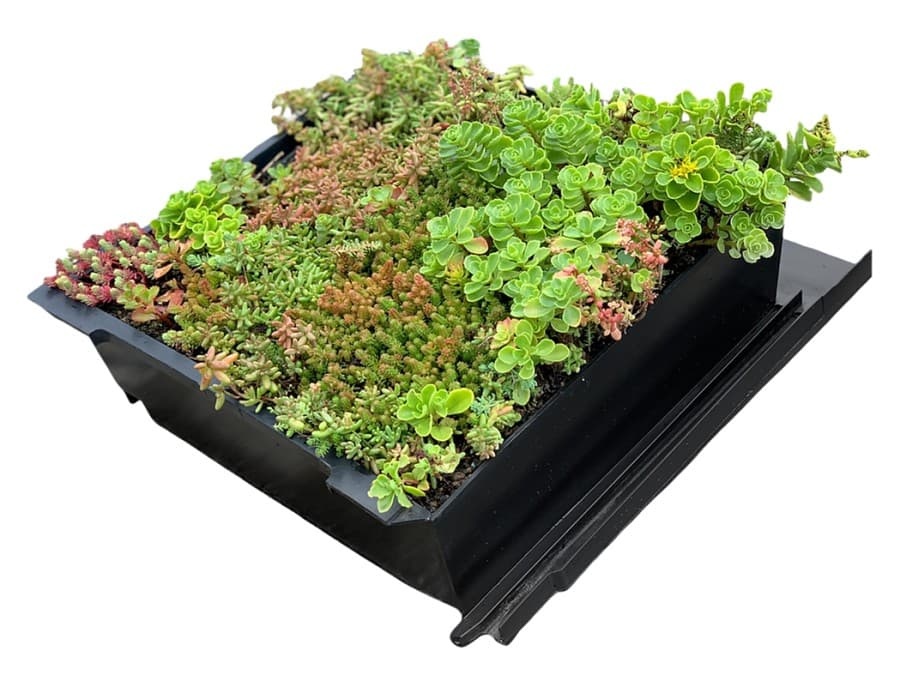 Zatímco tradiční skladba extenzivní zelené střechy je vhodná pro střechy o sklonu 5–10°, zapěstované střešní tašky využijete na střechách se sklonem od 5° až do 45°. Zelené střešní tašky jsou skvělou alternativou pro všechny, kteří si chtějí vytvořit zelenou oázu na šikmé střeše u rodinného či panelového domu, na garáži, zahradním domku nebo pergole.