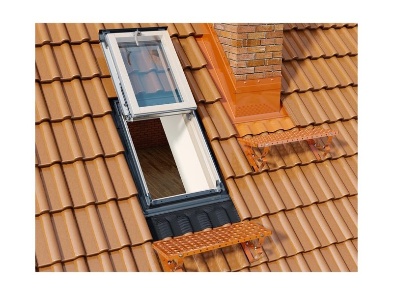 Střešní výlez ke komínu nebo pro odvětrání a prosvětlení místnosti. Určený pro instalaci do obytných prostor. Usnadňuje výstup na střechu při výměně střešní krytiny, čištění komínu a jiných údržbových prací.