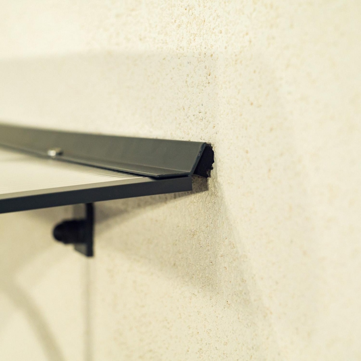 Stříška nad dveře vyrobená z práškově lakovaného hliníku. Na rozdíl od stříšek s plastovou konstrukcí hliníková konstrukce perfektně odolává vlivům počasí, i po letech je pevná a stabilní.