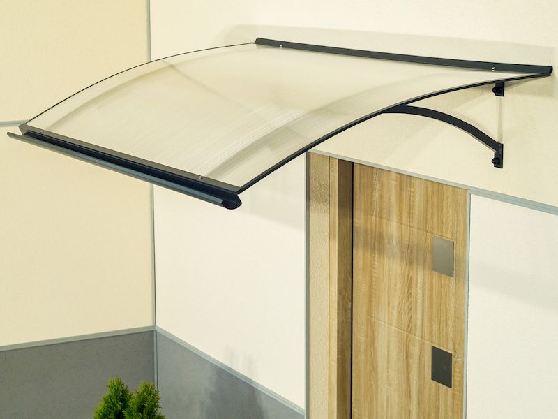 Stříška nad dveře je vyrobená z práškově lakovaného hliníku. Na rozdíl od stříšek s plastovou konstrukcí však hliníková konstrukce perfektně odolává vlivům počasí, i po letech je pevná a stabilní. V zimě dveřní stříška vlivem rmazu nekřehne a ani na silném letním slunci nedochází na zastřešení ke změnám barvy.