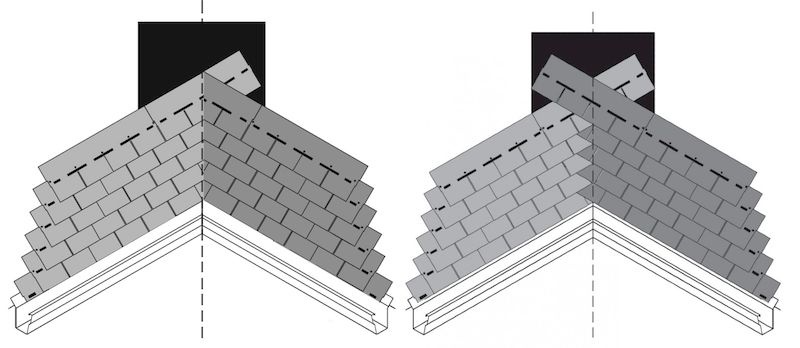 Popis obrázku: seříznuté úžlabí (vlevo) a prokládané úžlabí (vpravo)
