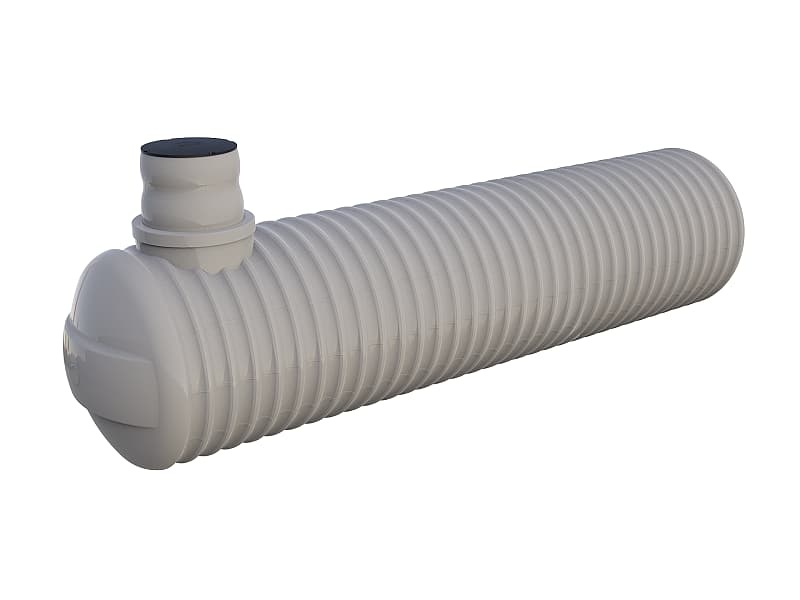 1. standardním průlezem z GRP v barvě nádrže s délkou 500 mm, což umožňuje zakrytí nádrže vrstvou zeminy do 600 mm (500 + 150 mm sedlo průlezu na nádrži),