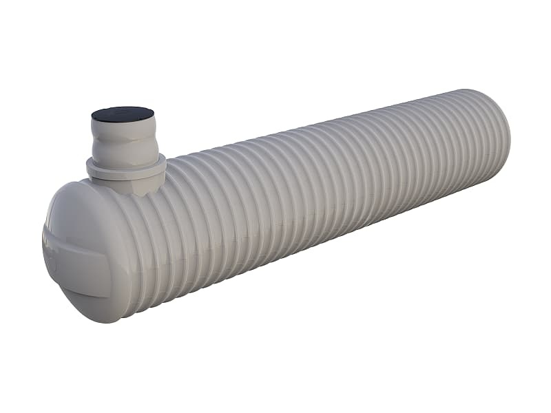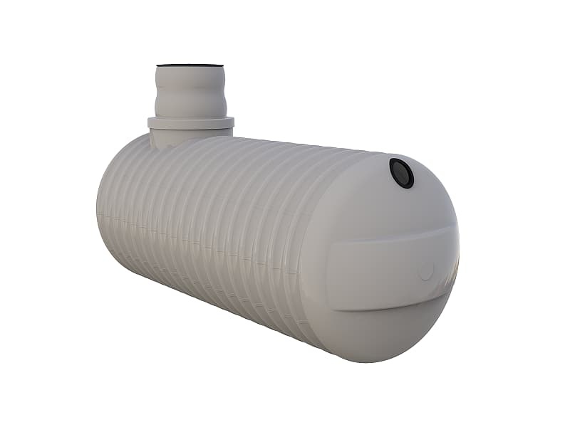 1. standardním průlezem z GRP v barvě nádrže s délkou 500 mm, což umožňuje zakrytí nádrže vrstvou zeminy do 600 mm (500 + 150 mm sedlo průlezu na nádrži),