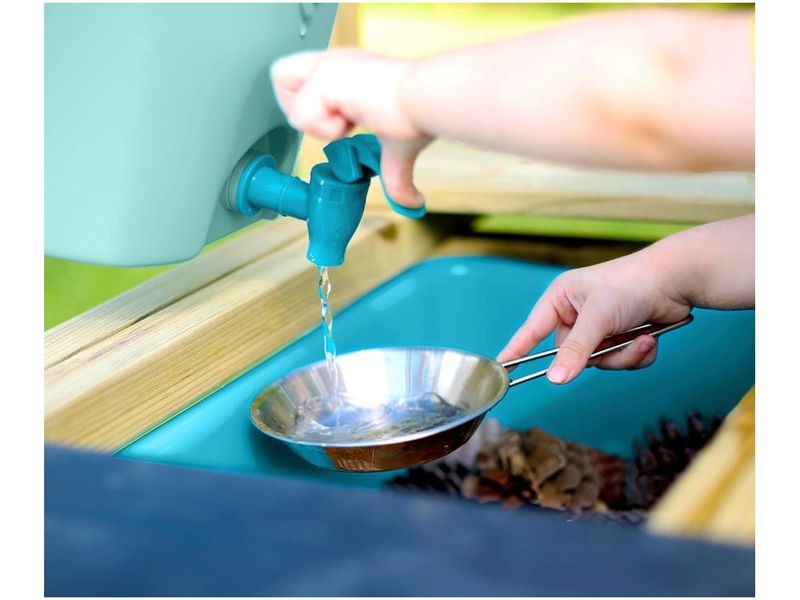 Vybavená kuchyňka Marmot od TP Toys zahrnuje odnímatelný funkční dřez, autentický vodní cyklus, čtyři namalované plotýnky a vysoce kvalitní nádobí z nerezové oceli. Pro naplnění dřezu stačí otevřít zátku ve dřezu a naplnit příslušné množství vody. Napuštěná voda se načerpá pomocí tlačítka pumpy a poté vyteče z kohoutku. Je ideální volbou pro děti, které chtějí zažít skutečnou kuchařskou zábavu.