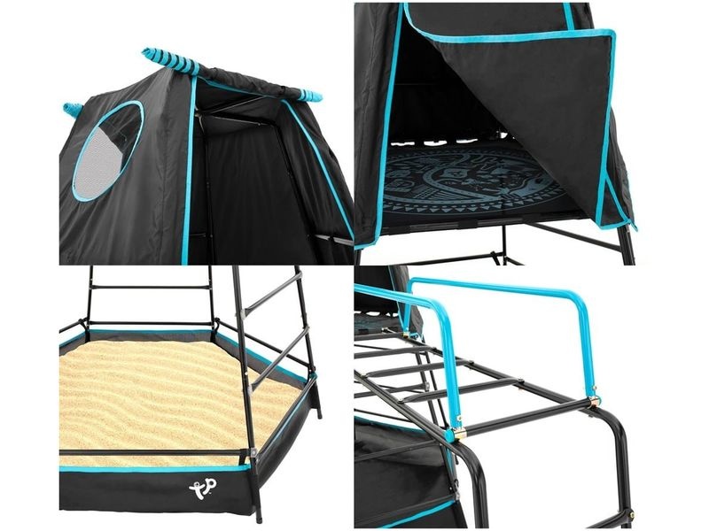 Obsahuje lezeckou stěnu s opičí dráhou, která je vybavena dvěma madly pro bezpečné šplhání. Místo pod hrací věží lze snadno přeměnit na pískoviště nebo na místo pro balónky. Součástí hřiště je i hrací stan vyrobený z robustního polyesteru, který má potištěnou podlahu a dva vchody, ideální pro kreativní hru a úkryt.