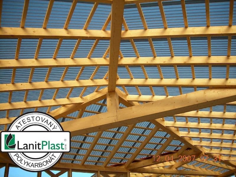 Trapézové desky z polykarbonátu o síle 0,8 mm s extrémně jemnou, matově sametovou povrchovou strukturou (krupičkou) na vnitřní straně desky. Povrchová struktura láme světlo, takže desky nejsou úplně průhledné, ale výrazně průsvitné a vzniká pod nimi příjemný chládek při zachování světelné propustnosti.
