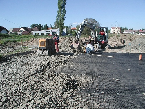 Dvouosá monolitická geomříž Tensar SS20 75x4,00m v celkové výměře zhruba 1250 m2
