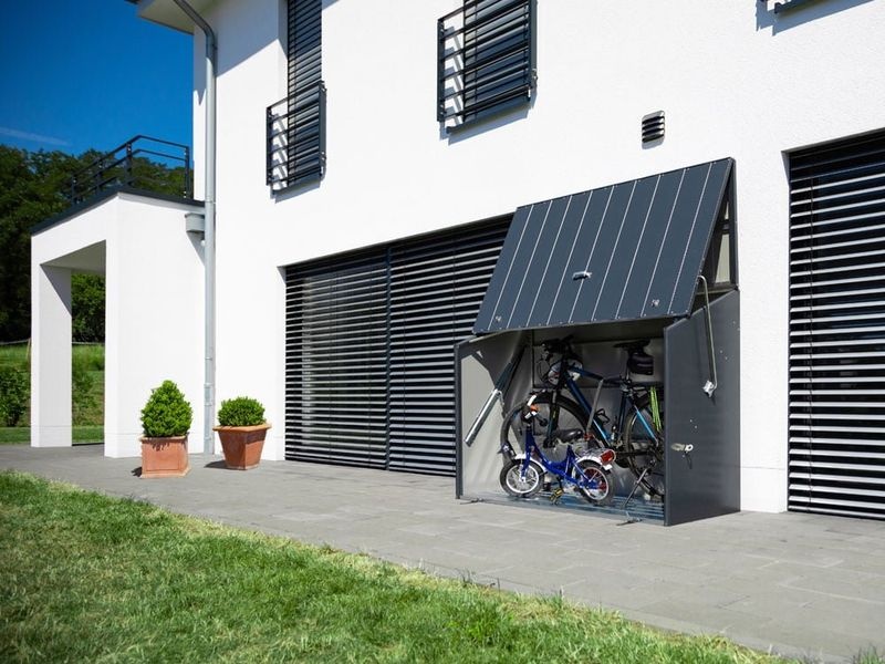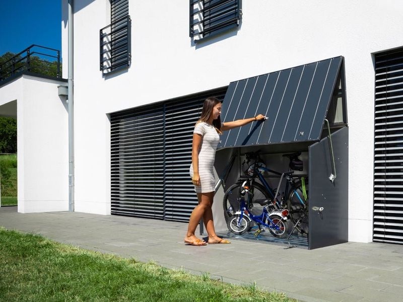 Kovový úložný box Sesame je ideální pro bezpečné uskladnění jízdních kol, zahradního nářadí i další techniky. Díky prostorným rozměrům se hodí na zahradu, k domu nebo do garáže a poskytuje dostatek místa pro více kusů vybavení.