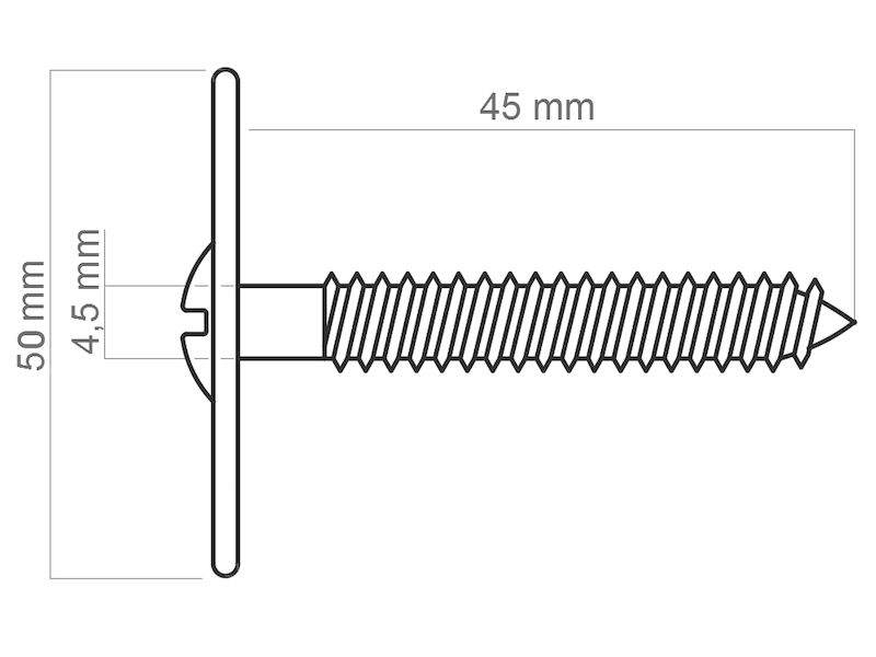 Rozměr 4,5 × 45 mm primárně určený k přichycení průhledné střešní krytiny do střešních latí.