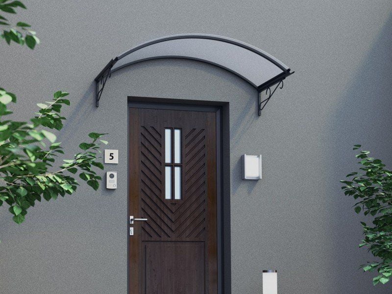 Stříška nad dveře vyrobená z práškově lakovaného hliníku. Na rozdíl od stříšek s plastovou konstrukcí hliníková konstrukce perfektně odolává vlivům počasí, i po letech je pevná a stabilní. V zimě mrazem nekřehne a ani na silném letním slunci nedochází ke změnám barvy.