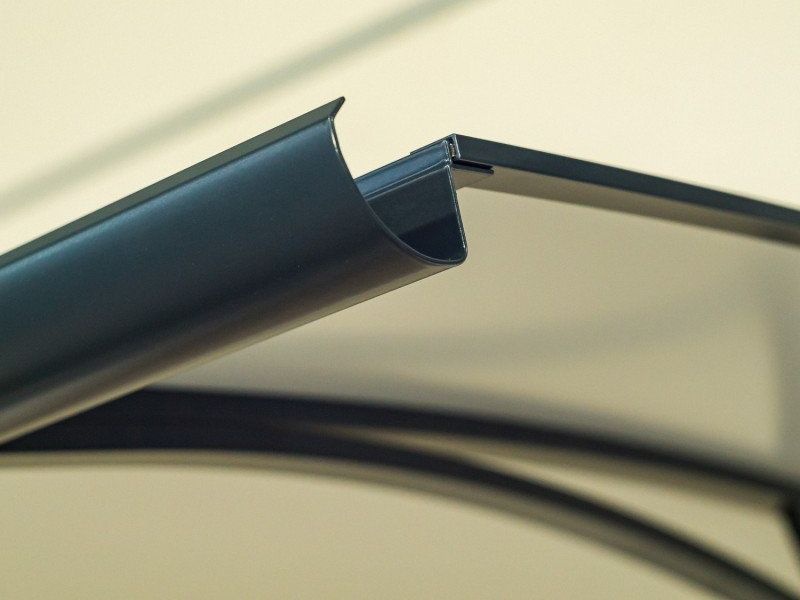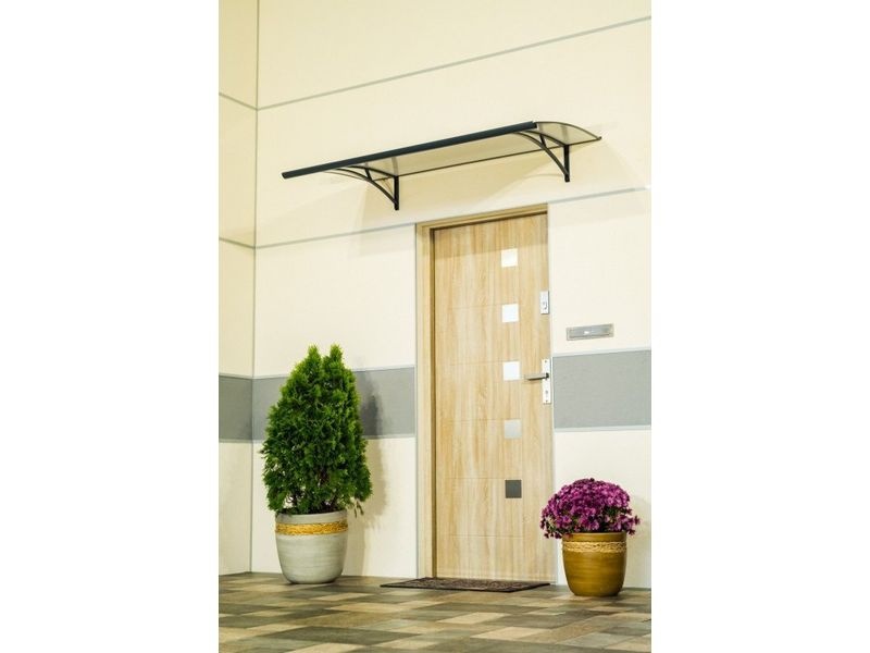 Stříška je zasklená neprůhledným kompozitním panelem se „sendvičovou“ konstrukci. To znamená, že jsou dvě hliníkové desky nalepené na centrální desku z polyethylenu (AL / PE / AL). Stříšku nad dveře namontujete svépomocí.