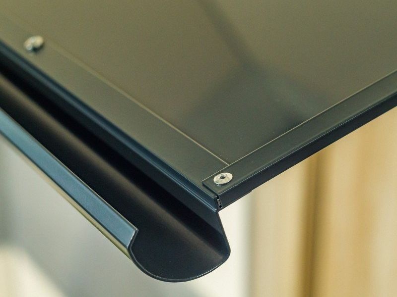 Stříška nad dveře vyrobená z práškově lakovaného hliníku. Na rozdíl od stříšek s plastovou konstrukcí hliníková konstrukce perfektně odolává vlivům počasí, i po letech je pevná a stabilní. V zimě mrazem nekřehne a ani na silném letním slunci nedochází ke změnám barvy.