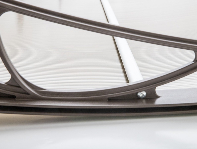 Italské stříšky nad vchodové dveře Valtellina se vyrábí z kvalitního dutinkového polykarbonátu Guttagliss Dual Box o síle 6 mm. Zakončovací lišty jsou vyrobeny z eloxovaného hliníku a konzole z pevnostního kopolymeru ve 4 barvách (hnědá, šedá, bílá, černá). Součástí dodávky jsou hmoždinky, šrouby a krytky. Stříšky nelze systémově spojit.
