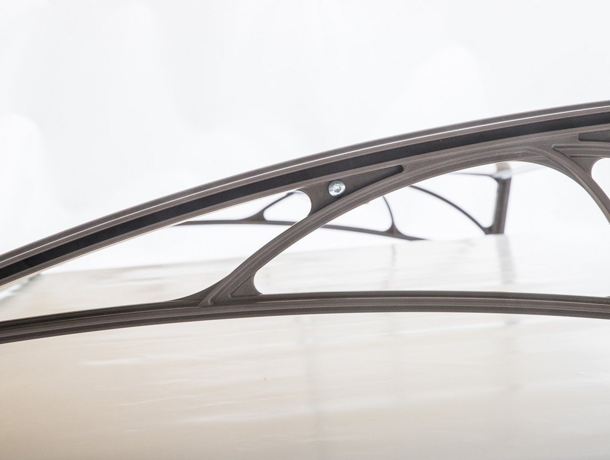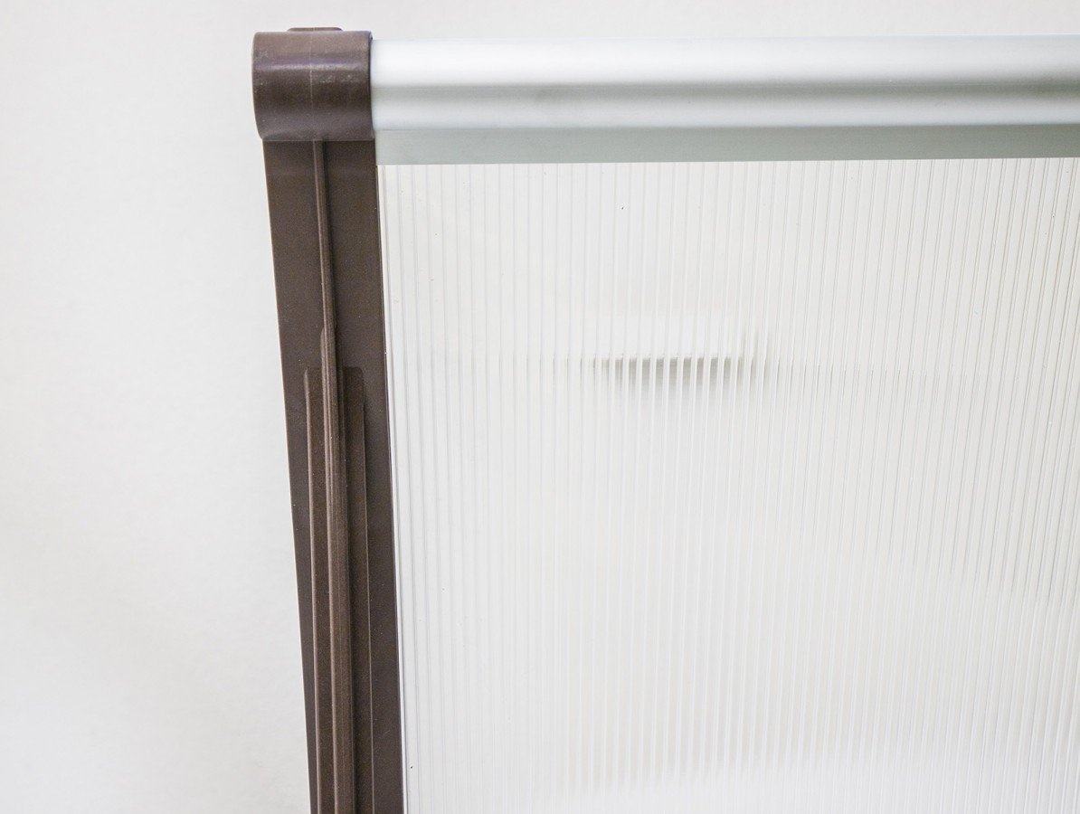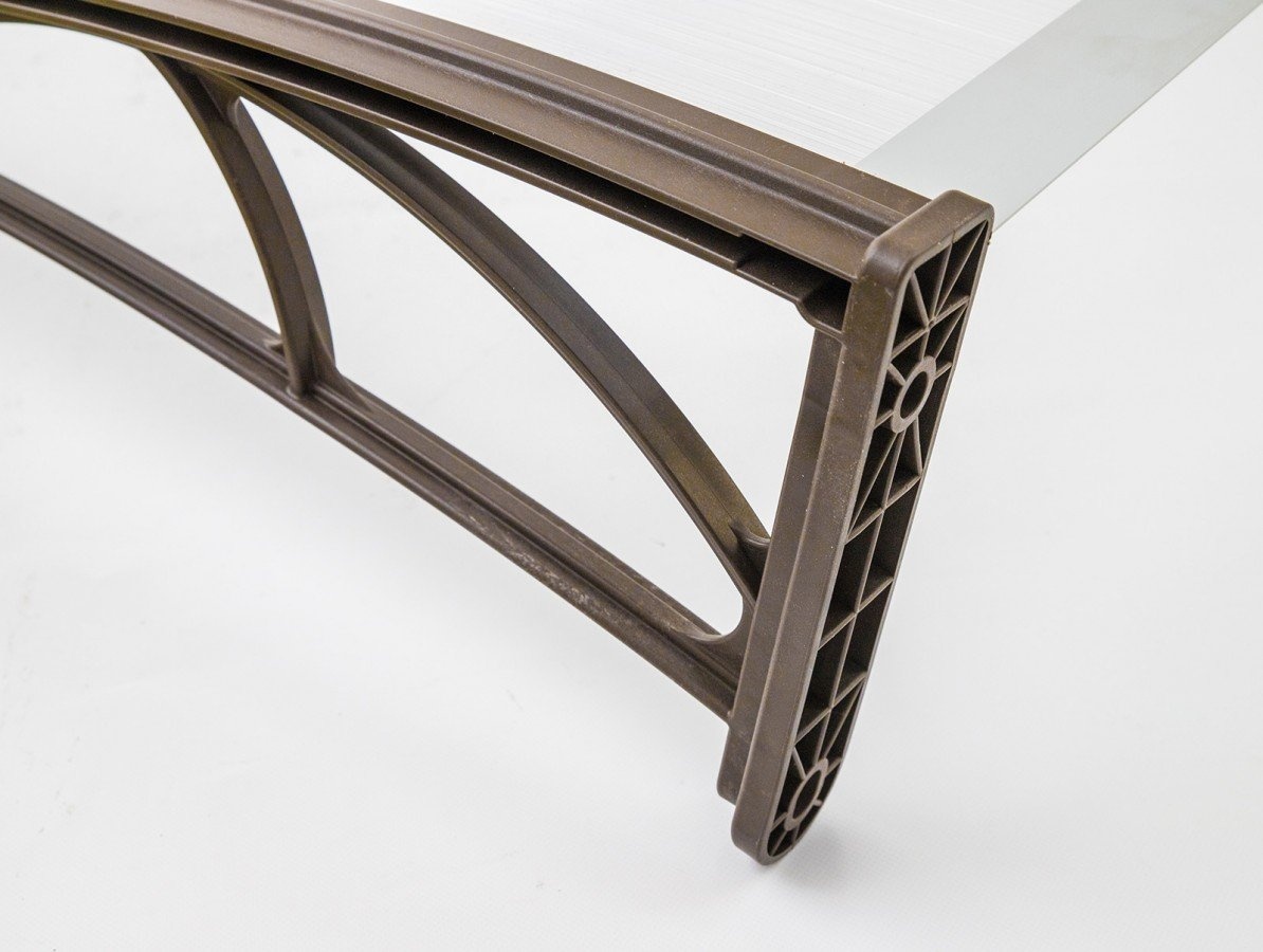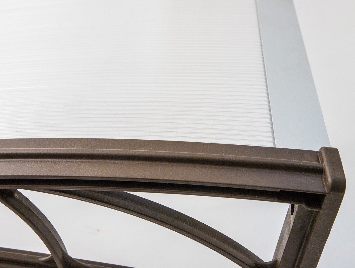 Italské stříšky nad vchodové dveře Valtellina se vyrábí z kvalitního dutinkového polykarbonátu Guttagliss Dual Box o síle 6 mm. Zakončovací lišty jsou vyrobeny z eloxovaného hliníku a konzole z pevnostního kopolymeru ve 4 barvách (hnědá, šedá, bílá, černá). Součástí dodávky jsou hmoždinky, šrouby a krytky. Stříšky nelze systémově spojit.