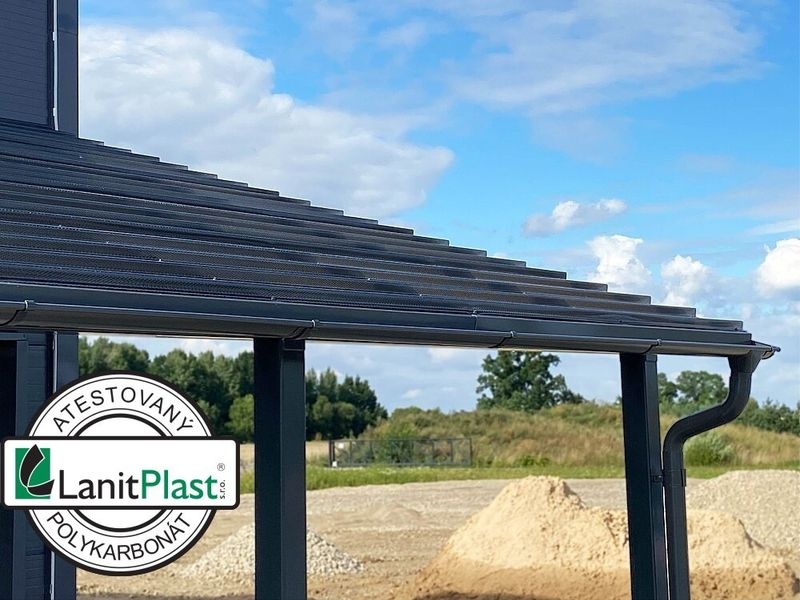 Povrchová struktura láme světlo, takže desky nejsou úplně průhledné, ale průsvitné a vzniká pod nimi příjemný jemný chládek při zachování světelné propustnosti. Mi­nimální spád konstrukce: 10 o