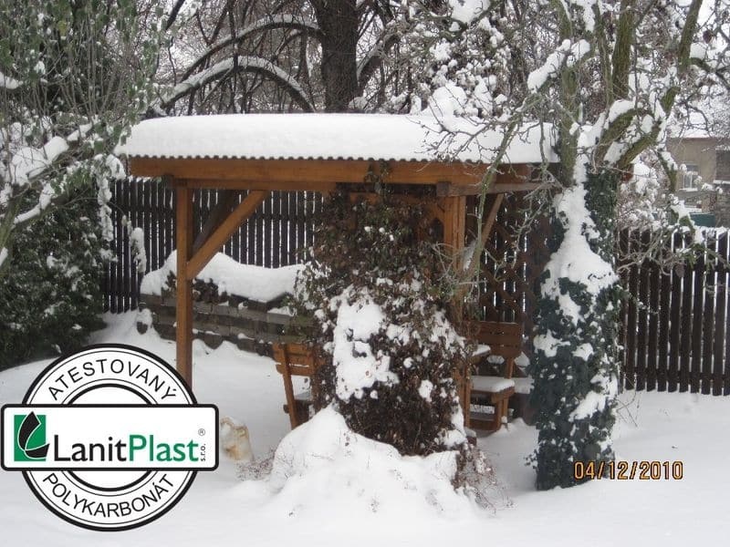 Vlnité desky z polykarbonátu o síle 0,8 mm s povrchovou krupičkou na vnitřní straně určenou pro rozptyl světla. Povrchová krupička láme světlo, takže desky nejsou úplně průhledné, ale průsvitné a vzniká pod nimi příjemný jemný chládek při zachování světelné propustnosti.