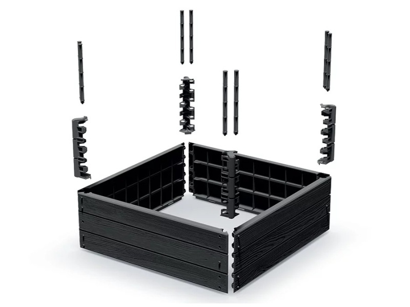 Konstrukce vyvýšeného záhonu je vyrobena z odolného plastu, který odolává UV záření i povětrnostním vlivům. Vyvýšený záhon nemá dno. Umožňuje tak přímý kontakt rostlin s půdou.