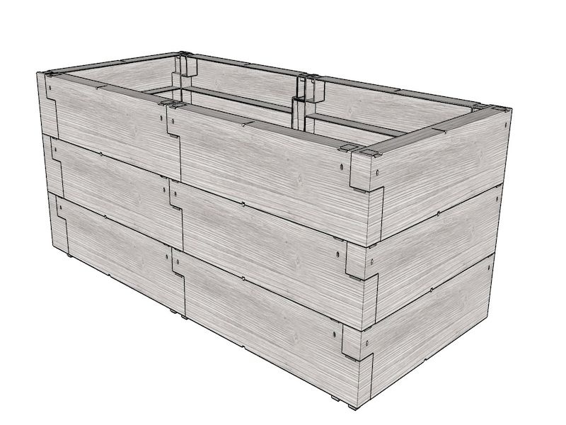 Tento model záhonu je složen z několika vrstev plastových „kamenů“. Kamenů je 18. Jednotlivé kameny se do sebe zasouvají a uvnitř jsou propojeny několika silnými kovovými dráty proti roztažení vlivem hmotnosti zeminy (proti soudkovitému efektu).