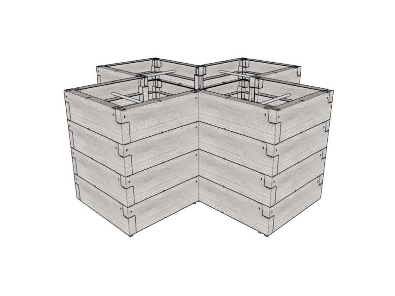 Tento model záhonu je složen z několika vrstev plastových „kamenů“. Kamenů je 48. Jednotlivé kameny se do sebe zasouvají a uvnitř jsou propojeny několika silnými kovovými dráty proti roztažení vlivem hmotnosti zeminy (proti soudkovitému efektu).