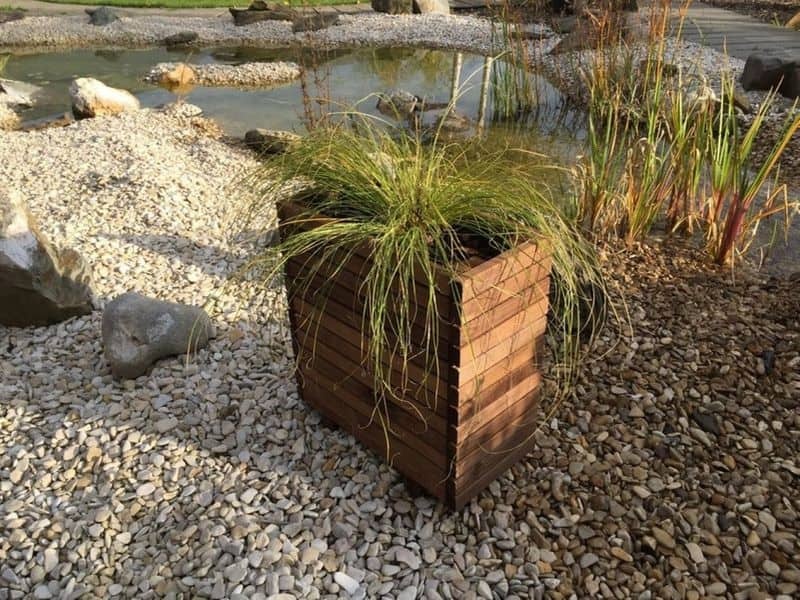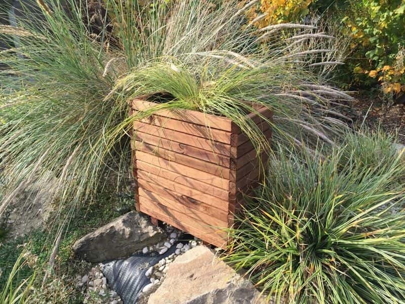 Při vrstvení půdy ve vyvýšeném záhonu doporučujeme strukturu půdy přizpůsobit rostlinám. Box na květiny je vystlaný geotextílií.