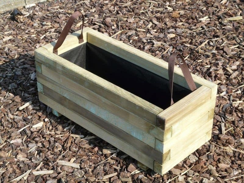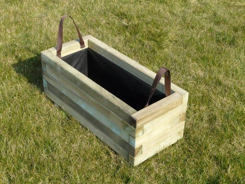 Přenosný box na květiny o rozměrech š. 50 × d. 110 × v. 38 cm. Dřevo je ošetřeno tlakovou impregnací, přesto ho doporučujeme ošetřit vhodnou povrchovou úpravou pro venkovní dřevo podle vlastní volby – tzn. protiplísňový nátěr + např. lazura.