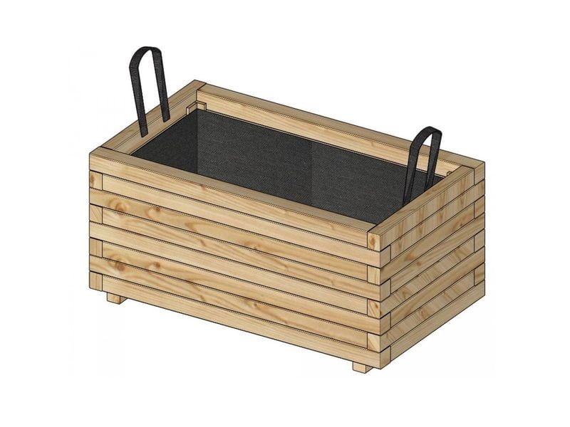 Při vrstvení půdy ve vyvýšeném záhonu doporučujeme strukturu půdy přizpůsobit rostlinám. Box na květiny je vystlaný geotextílií a má dvě ucha na přenášení.