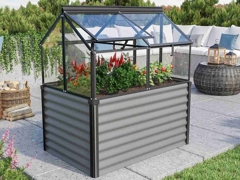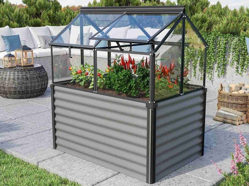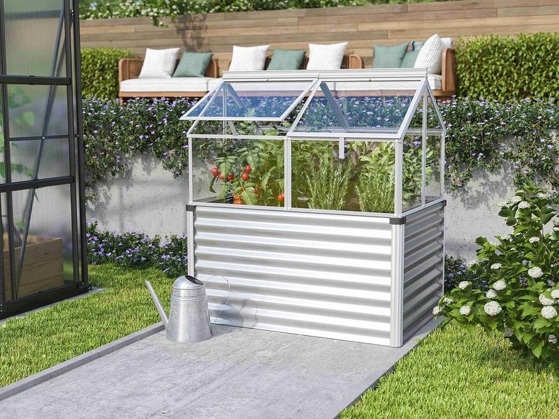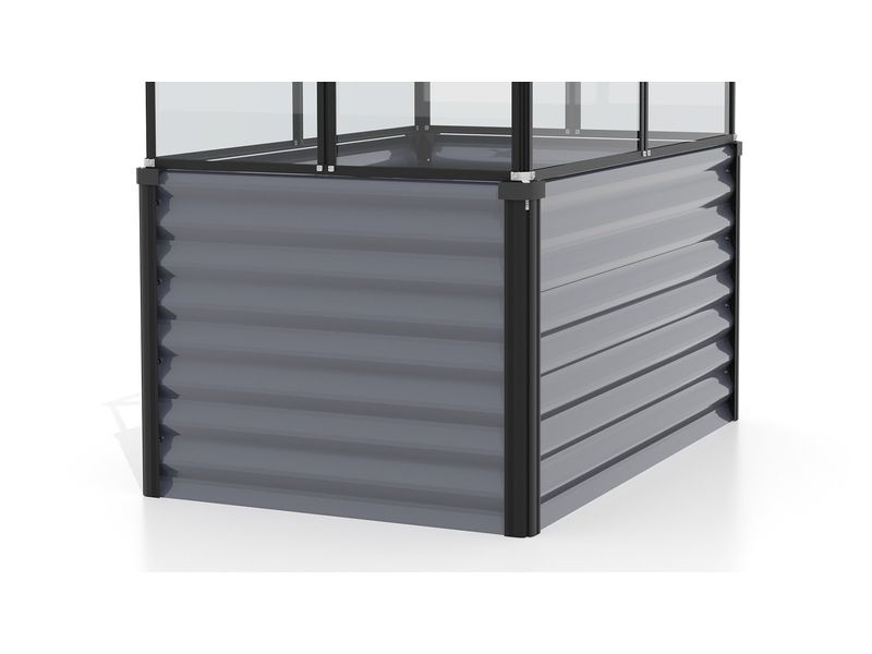 Vyvýšený záhon s pařeništěm je vyroben z eloxovaných hliníkových profilů. Prosklení je tvořeno z kaleného čirého skla o síle 3 mm. Tato kombinace materiálů poskytuje rostlinám vynikající tepelnou izolaci a ideální světelné podmínky pro další růst.