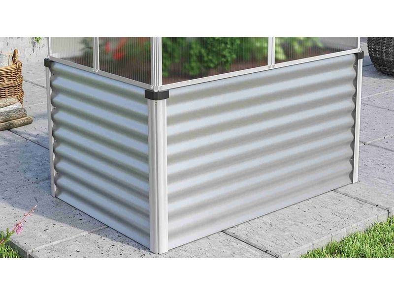 Vyvýšený záhon s pařeništěm je vyroben z eloxovaných hliníkových profilů. Prosklení je tvořeno z kaleného čirého skla o síle 3 mm. Tato kombinace materiálů poskytuje rostlinám vynikající tepelnou izolaci a ideální světelné podmínky pro další růst.