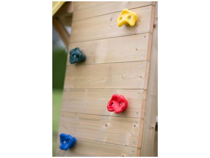 Hrací věž je vybavena skluzavkou, ke které vede žebřík i lezecká stěna. Vaše dítě si může ve věži vytvořit tajnou skrýš nebo se zapojit do různých kreativních her.
