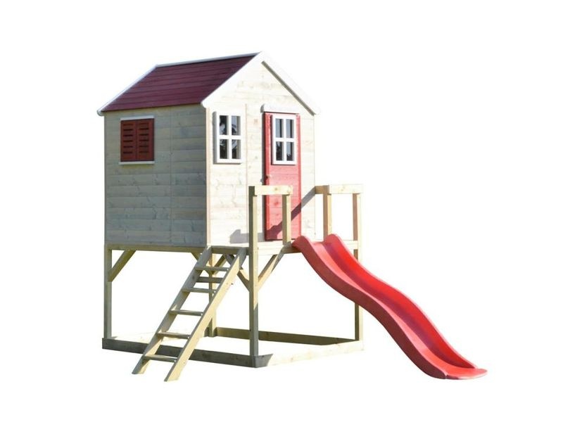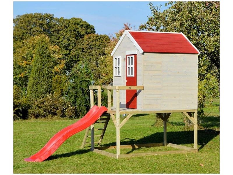 Domeček je vybaven skluzavkou (ke které vede žebřík) a krytým pískovištěm, které nabízí nekonečné možnosti pro dovádění a hry. Pískoviště je chráněno domečkem nad ním, což umožňuje jeho použití i za mírného deště. Vaše dítě si může v domečku vytvořit tajnou skrýš nebo se zapojit do různých kreativních her.