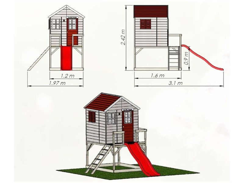 Domeček na chůdách s rozměry 310×350×242 cm je praktickým a zábavným doplňkem do vaší zahrady. Součástí domečku je skluzavka a pískovištěm, což dětem poskytne skvělé možnosti pro hraní. Je ideálním místem pro dobrodružství a kreativní hru, která vaše děti potěší a zabaví.