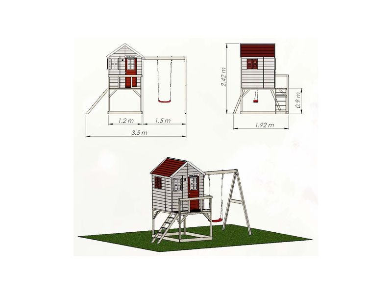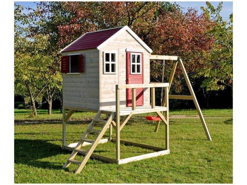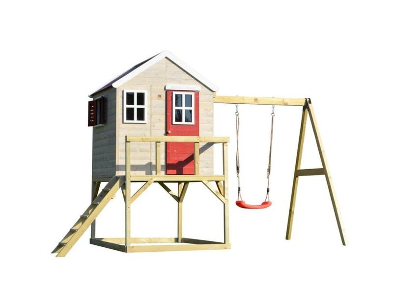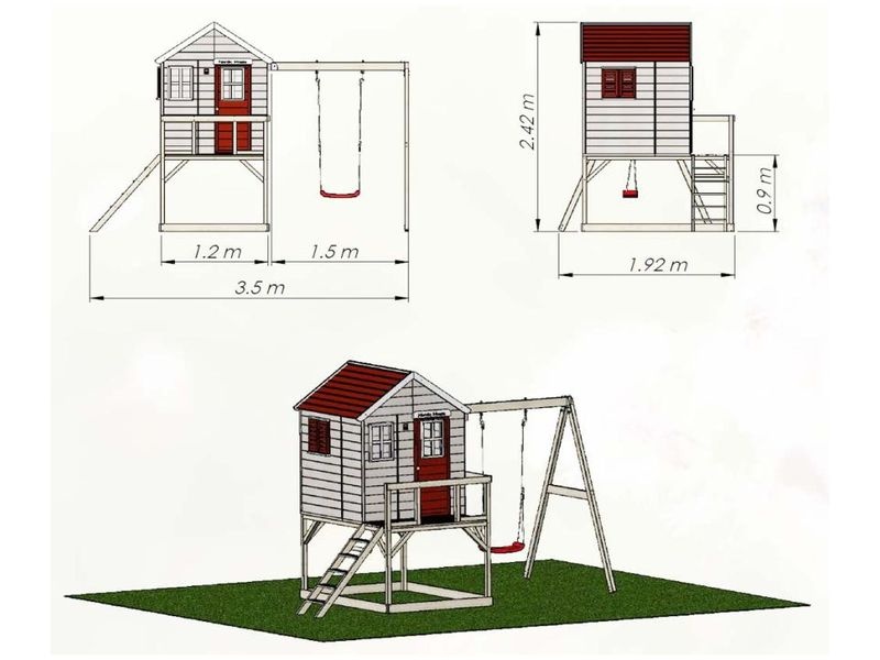 Domeček na chůdách s rozměry 192×350×242 cm je praktickým a zábavným doplňkem do vaší zahrady. Součástí domečku je houpačka s pískovištěm, což dětem poskytne skvělé možnosti pro hraní. Je ideálním místem pro dobrodružství a kreativní hru, která vaše děti potěší a zabaví.