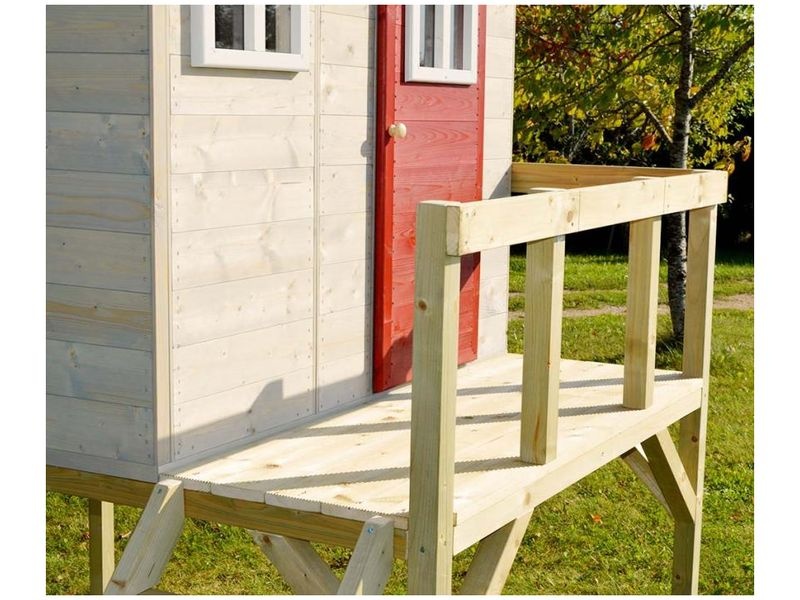 Domeček je vyroben z odolného severského borovicového dřeva, které zaručuje dlouhou životnost a bezpečnost pro vaše děti. Veškeré použité materiály splňují přísné bezpečnostní normy, což potvrzuje certifikát FSC-Mix 70 % a EN71. Nosnost domečku je 50 kg.