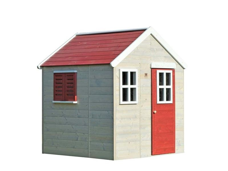 Domeček na hraní zaujme svým přirozeným vzhledem z borovicového dřeva. Jedno mřížové okno z plexiskla a druhé okno s okenicemi dodávají domečku jedinečný a přitažlivý vzhled, který děti okouzlí.