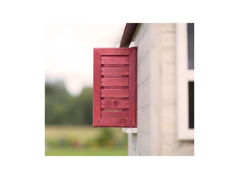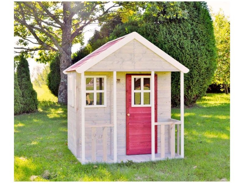 Domeček na hraní zaujme svým přirozeným vzhledem z borovicového dřeva. Dvě mřížová okna s plexiskly a krytá veranda následována červenými vstupními dveřmi dodávají domečku jedinečný a přitažlivý vzhled, který děti okouzlí.