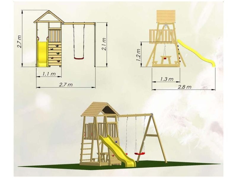 Hrací věž rozměry 280×270×270 cm je praktickým a zábavným doplňkem do vaší zahrady. Součástí věže je skluzavka s houpačkou, lezeckou stěnou a piknikovým stolem, což dětem poskytne skvělé možnosti pro hraní. Je ideálním místem pro dobrodružství a kreativní hru, která vaše děti potěší a zabaví.
